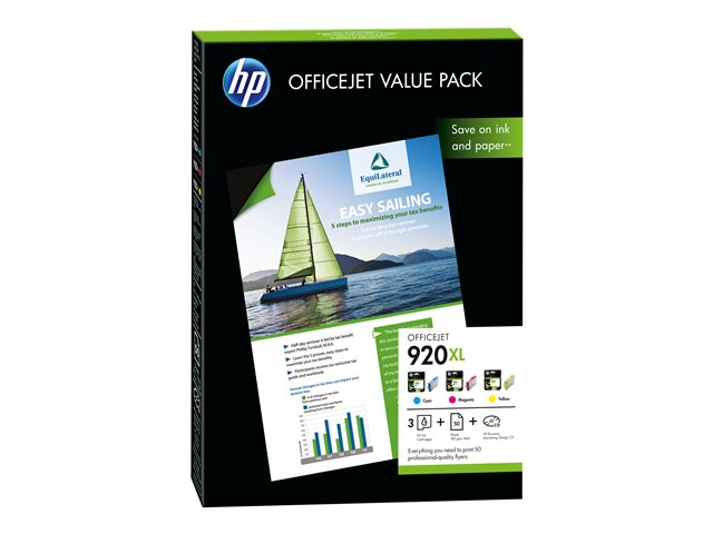HP 920XL Officejet Value Pack - Gul, cyan, magenta - A4 (210 x 297 mm) - 180 g/m² - 50 ark bläckpatron/papperssats - för Officejet 6000, 6000 E609, 6500, 6500 E709, 6500A E710, 7000 E809, 7500