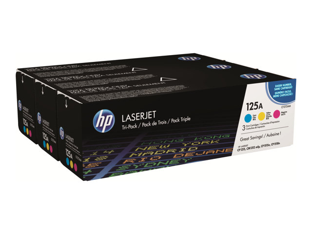 HP 125A Tri-pack - 3-pack - gul, cyan, magenta - original - LaserJet - tonerkassett (CE259AM) - för Color LaserJet CM1312 MFP, CM1312nfi MFP, CP1215, CP1515n, CP1518ni