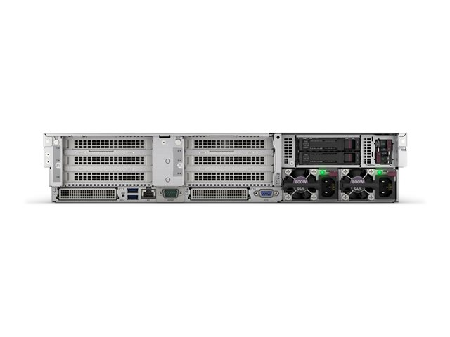 | Gränssnitt | 1 x HPE iLO (1 på framsidan) (service port) 5 x USB 3.2 Gen 1 (1 fram, 2 bak, 2 interna) 1 x VGA 4 x LAN (Gigabit Ethernet) |