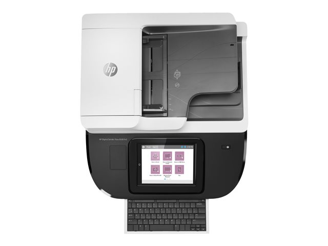 | Funktioner för skanner | Skanna till portabel USB-enhet, Automatic Image Orientation, automatisk färgdetektering, Auto Crop, inbyggd High Performance Secure-hårddisk, 8-tums pekskärms-TFT-display, Ultrasonic Multi Feed Detection, inbyggt tangentbord, Hardware Integration Pocket (HIP), HP EveryPage, OCR Text Recognition |